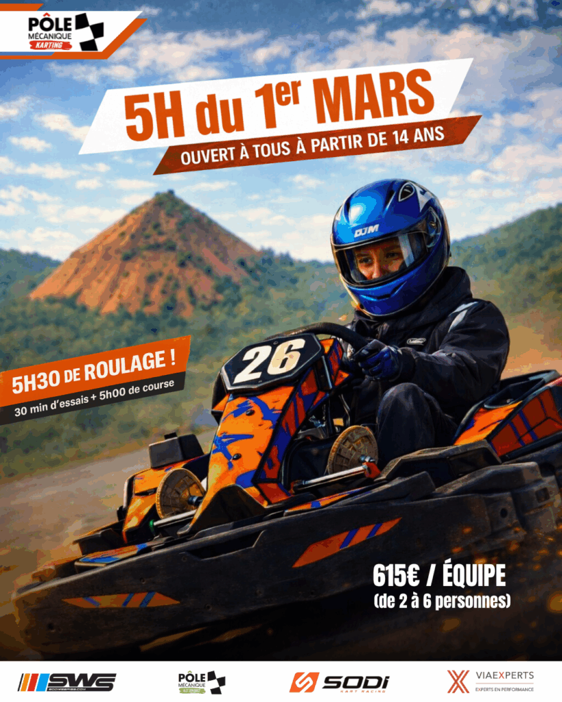 Venez participer à la 5H00 du 1er Mars 2026Format : 30Min D'essais / 5H00 de course